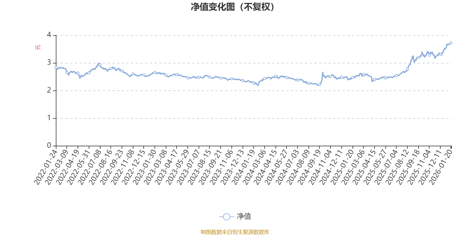 截至2025年四季度末,基金十大重仓股分别是中国铝业、天赐材料、寒武纪、西部矿业、洛阳钼业、紫金矿业、中国平安、神火股份、海光信息、麦格米特。