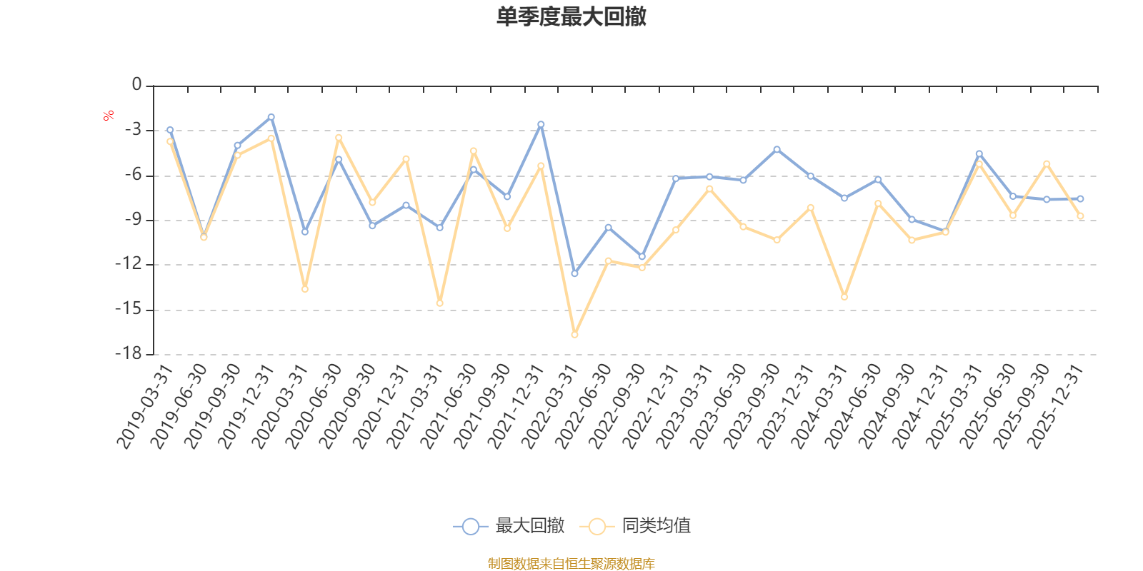 截至1月20日,基金近三年最大回撤为18.11%,同类可比基金排名243/1264。单季度最大回撤出现在2022年一季度,为12.58%。