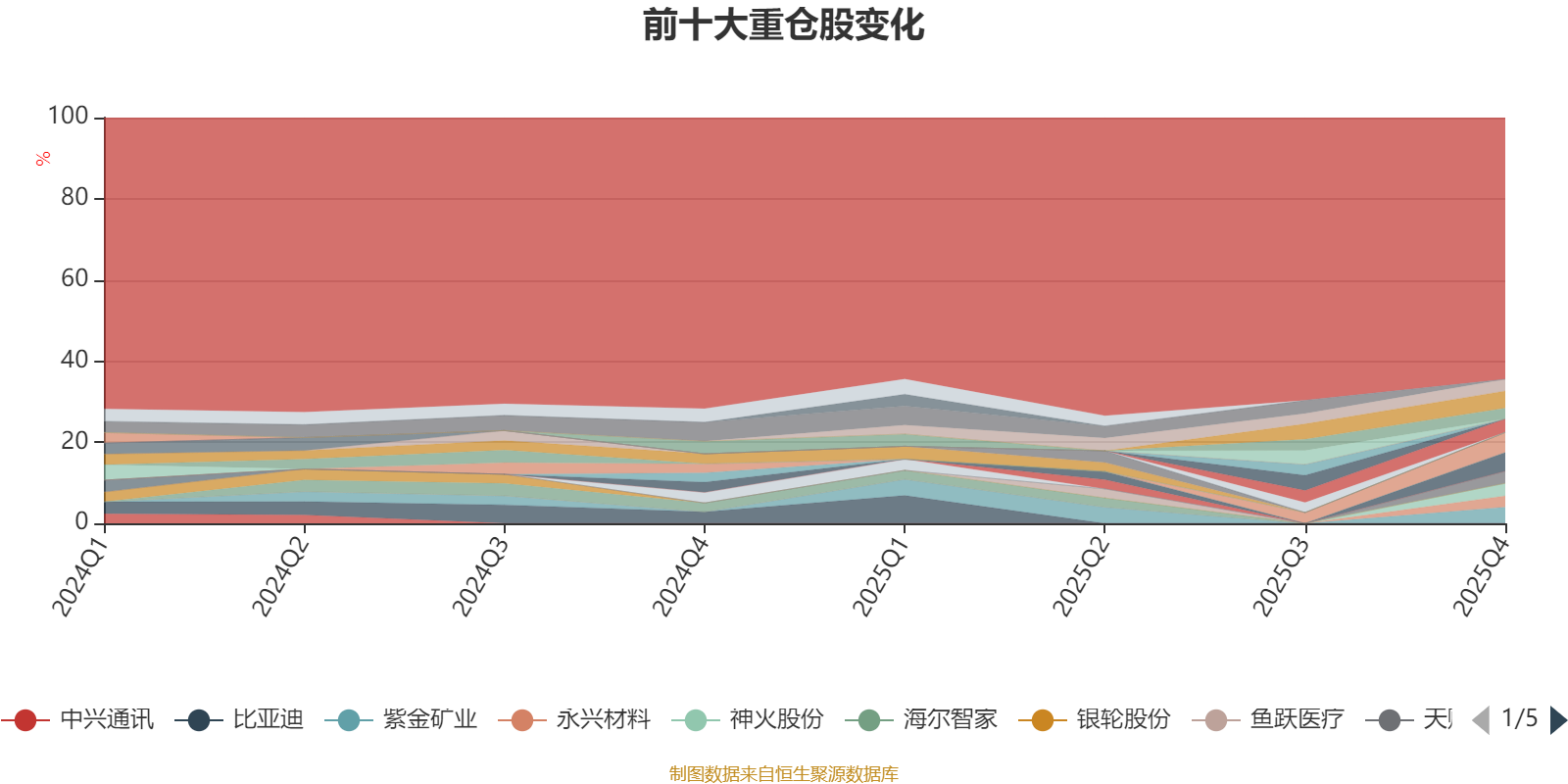 截至2025年四季度末,基金十大重仓股分别是中国铝业、寒武纪、西部矿业、紫金矿业、麦格米特、神火股份、天赐材料、洛阳钼业、永兴材料、海光信息。