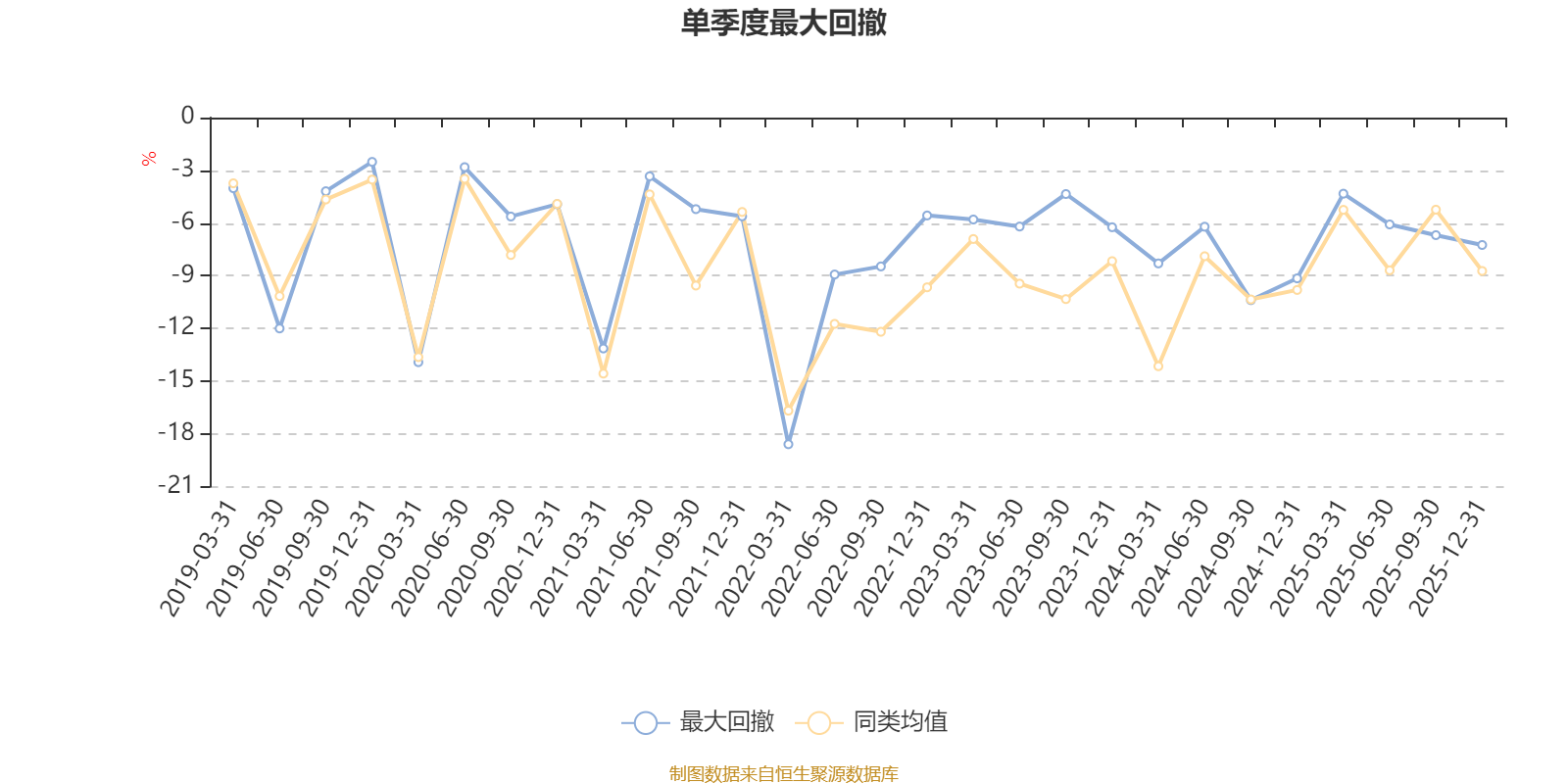 截至1月20日,基金近三年最大回撤为18.14%,同类可比基金排名243/1264。单季度最大回撤出现在2022年一季度,为18.59%。