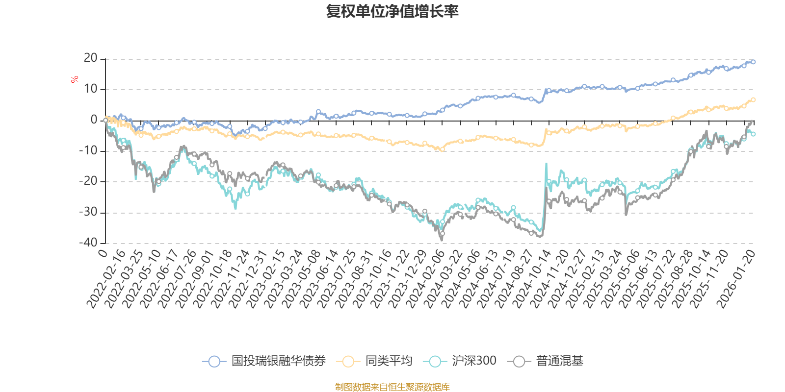 截至1月20日,国投瑞银融华债券近三个月复权单位净值增长率为2.81%,位于同类可比基金207/629;近半年复权单位净值增长率为5.42%,位于同类可比基金242/629;近一年复权单位净值增长率为7.45%,位于同类可比基金311/626;近三年复权单位净值增长率为19.14%,位于同类可比基金91/564。