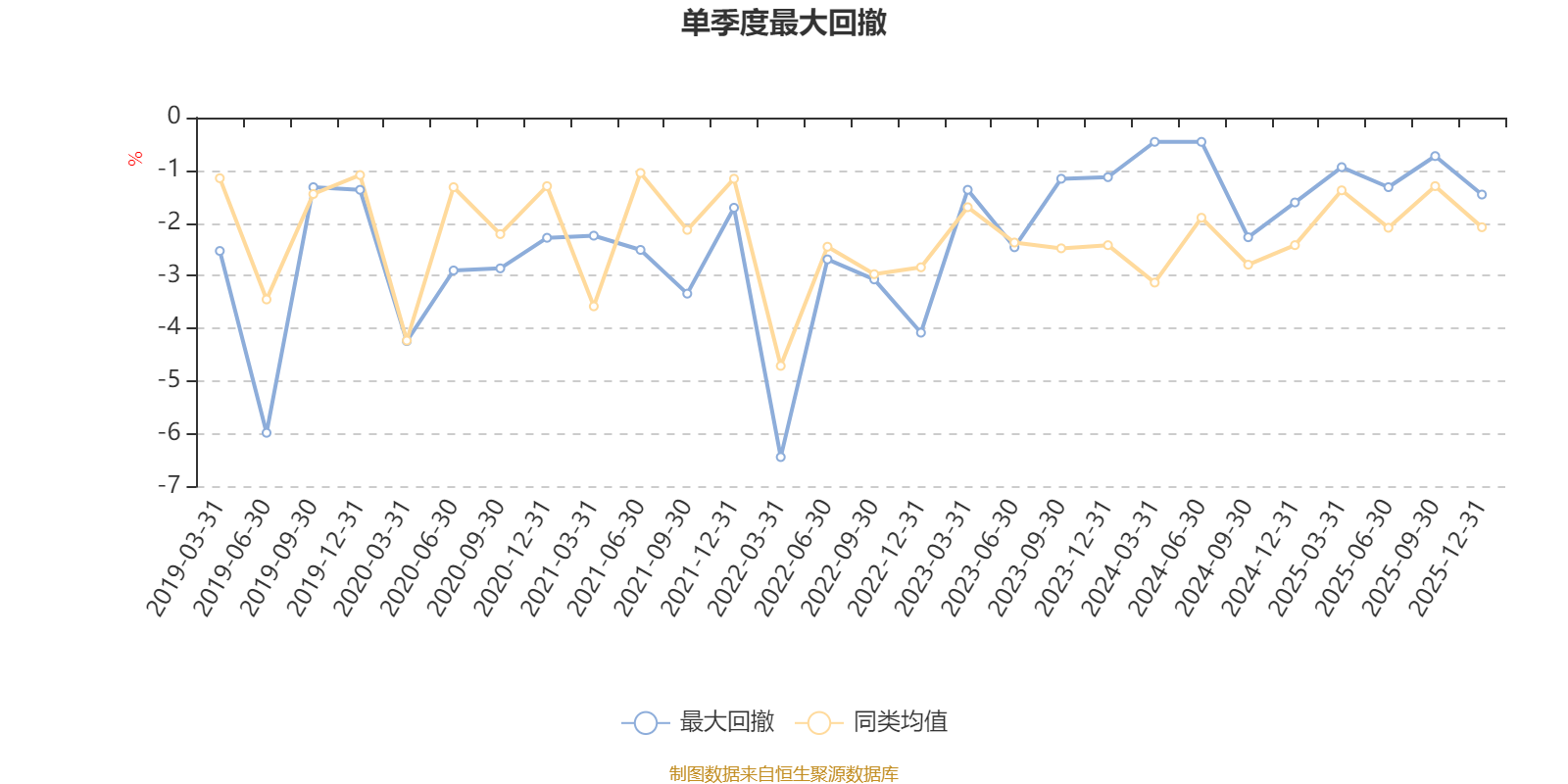 截至1月20日,基金近三年最大回撤为2.46%,同类可比基金排名42/526。单季度最大回撤出现在2022年一季度,为6.44%。