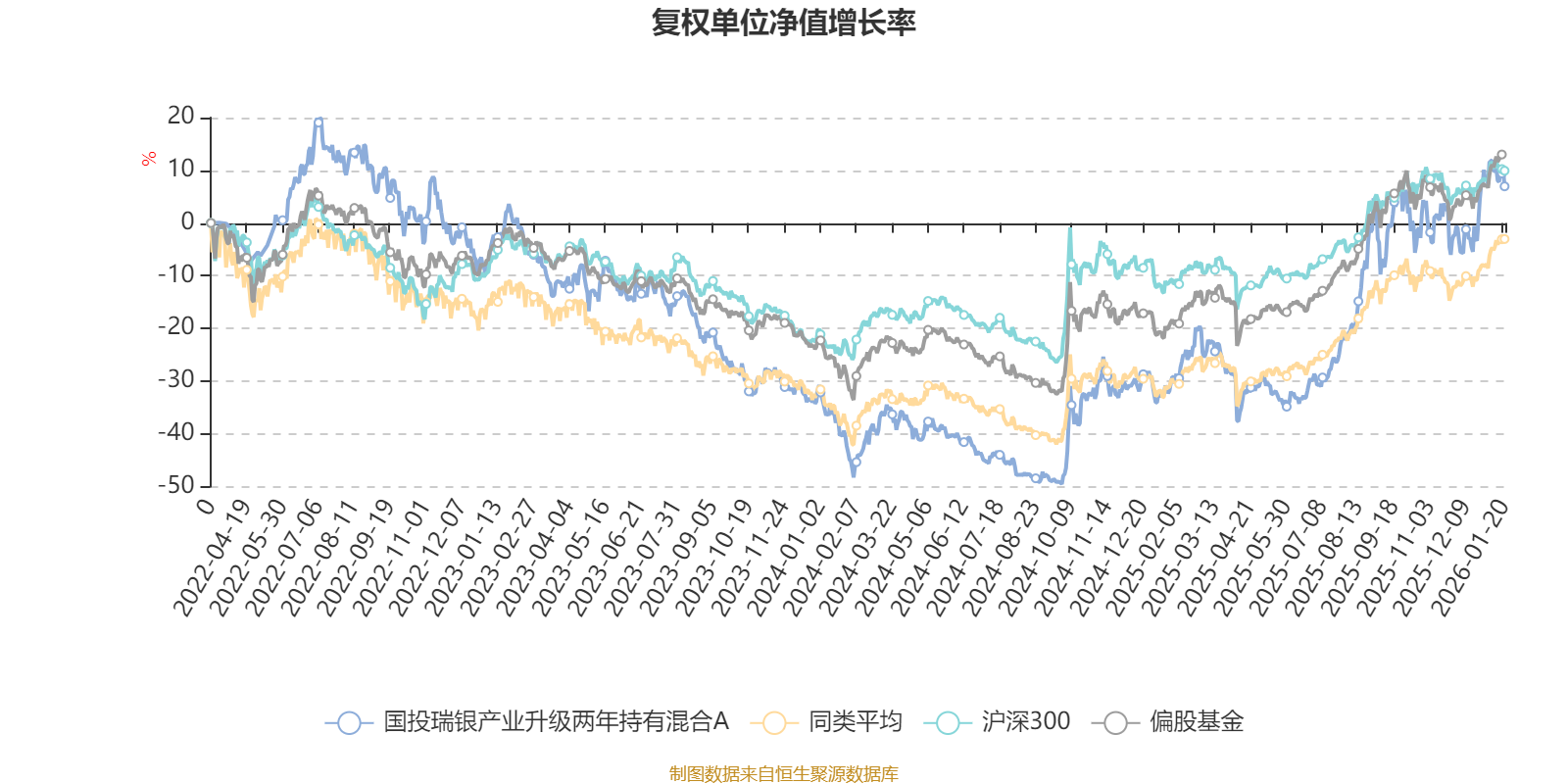 截至1月20日,国投瑞银产业升级两年持有混合A近三个月复权单位净值增长率为11.56%,位于同类可比基金214/621;近半年复权单位净值增长率为43.61%,位于同类可比基金75/621;近一年复权单位净值增长率为53.55%,位于同类可比基金149/613;近三年复权单位净值增长率为7.02%,位于同类可比基金335/535。