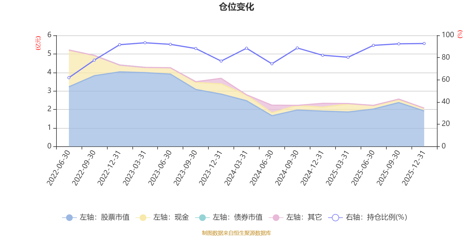 据定期报告数据统计,近三年平均股票仓位为86.72%,同类平均为85.74%。2023年一季度末基金达到93.38%的最高仓位,2022年上半年末最低,为61.91%。