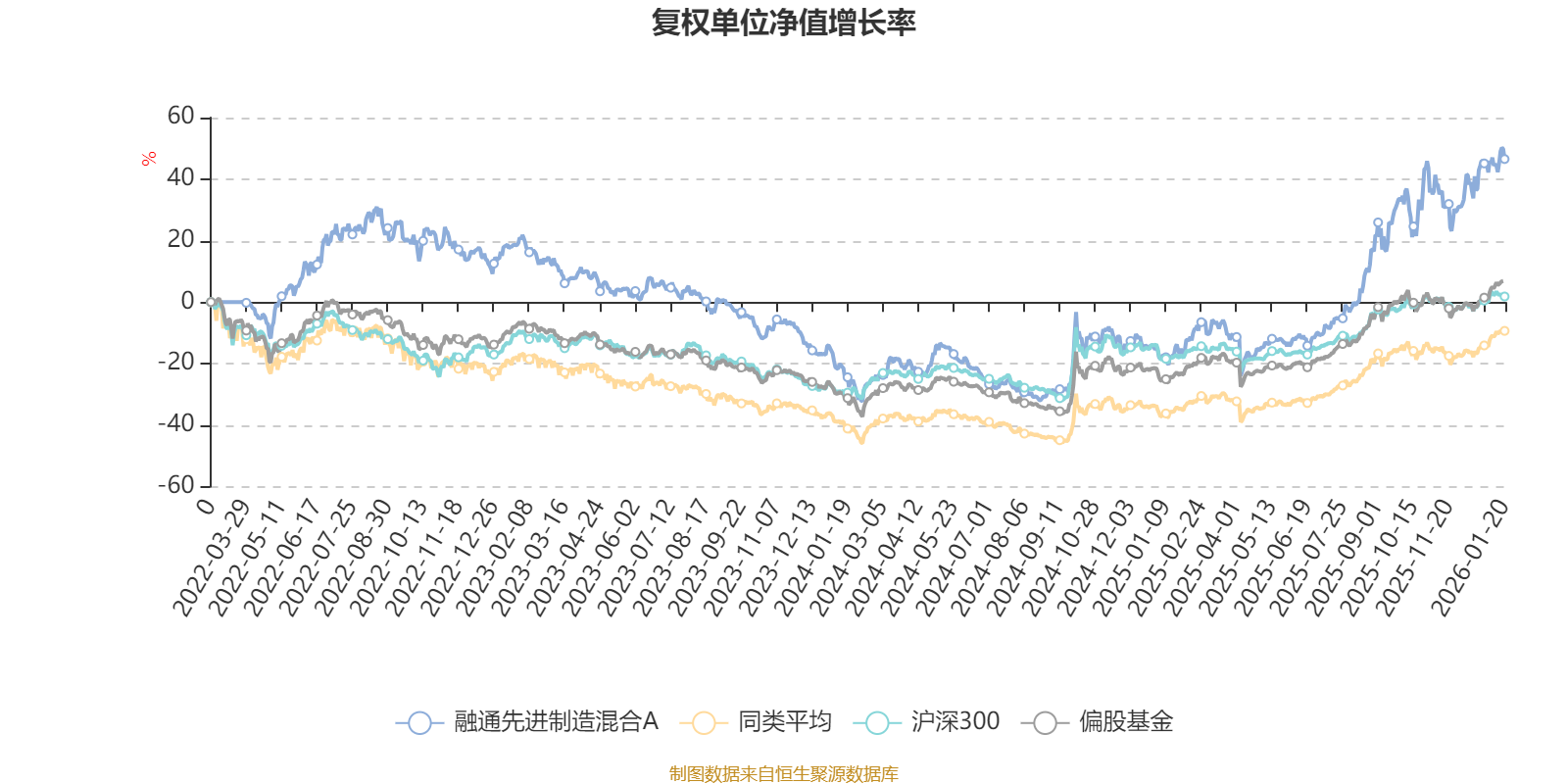 截至1月20日,融通先进制造混合A近三个月复权单位净值增长率为15.74%,位于同类可比基金97/621;近半年复权单位净值增长率为54.95%,位于同类可比基金32/621;近一年复权单位净值增长率为71.75%,位于同类可比基金45/613;近三年复权单位净值增长率为22.90%,位于同类可比基金211/535。
