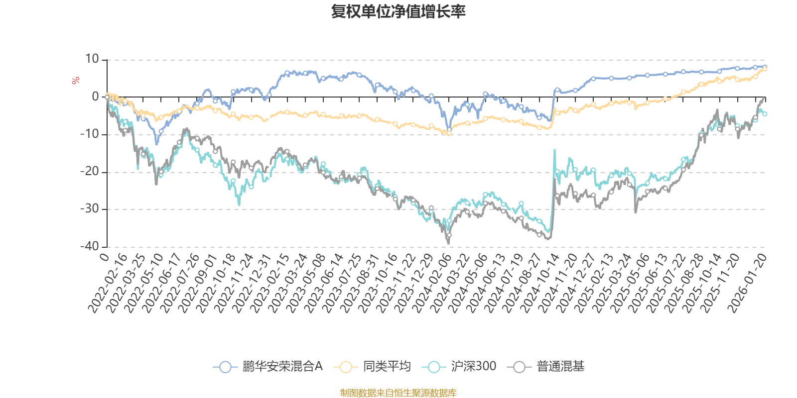 截至1月20日,鹏华安荣混合A近三个月复权单位净值增长率为0.54%,位于同类可比基金576/670;近半年复权单位净值增长率为1.31%,位于同类可比基金583/670;近一年复权单位净值增长率为2.91%,位于同类可比基金588/669;近三年复权单位净值增长率为3.56%,位于同类可比基金499/597。