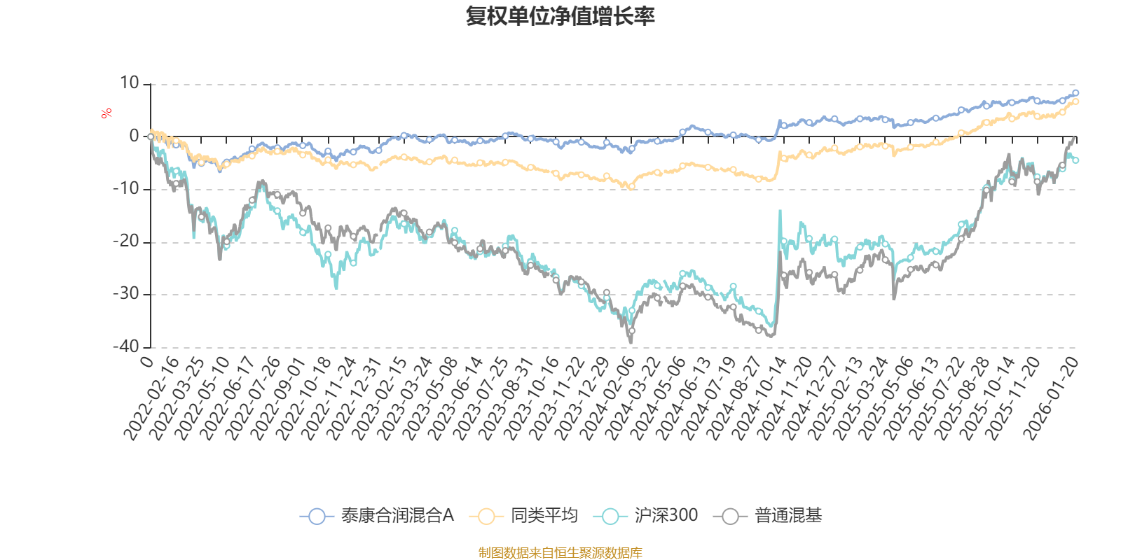 截至1月20日,泰康合润混合A近三个月复权单位净值增长率为1.79%,位于同类可比基金354/629;近半年复权单位净值增长率为3.60%,位于同类可比基金383/629;近一年复权单位净值增长率为5.43%,位于同类可比基金445/626;近三年复权单位净值增长率为8.58%,位于同类可比基金389/564。