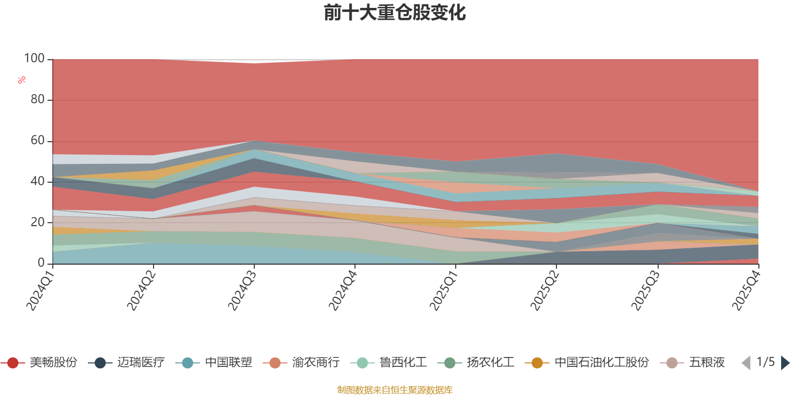 截至2025年四季度末,基金十大重仓股分别是迈瑞医疗、中信股份、九号公司、福斯特、山金国际、中国石油化工股份、万华化学、美畅股份、福莱特玻璃、中国移动。