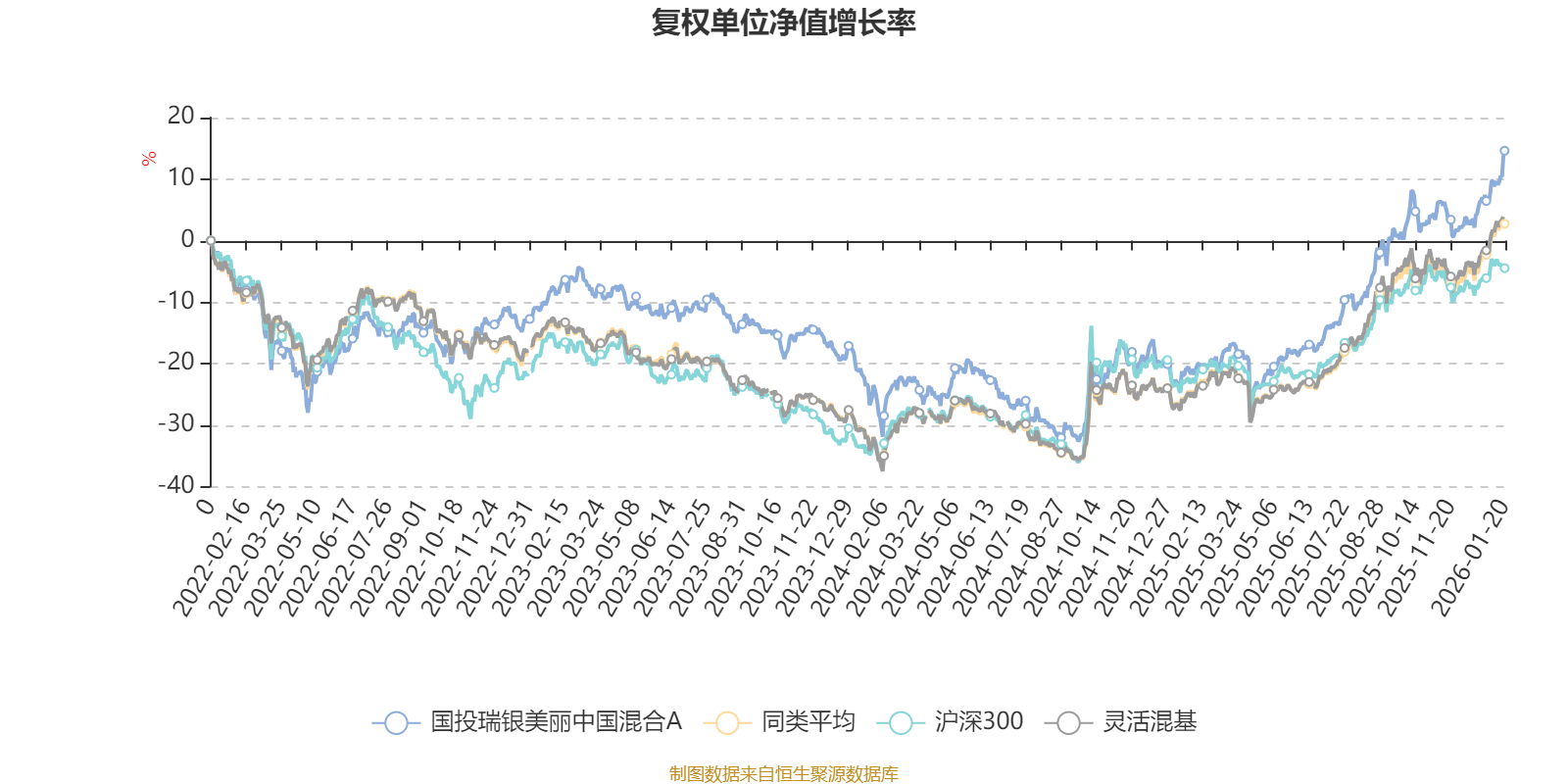 截至1月20日,国投瑞银美丽中国混合A近三个月复权单位净值增长率为12.79%,位于同类可比基金400/1286;近半年复权单位净值增长率为30.38%,位于同类可比基金428/1286;近一年复权单位净值增长率为44.70%,位于同类可比基金384/1286;近三年复权单位净值增长率为26.32%,位于同类可比基金414/1286。