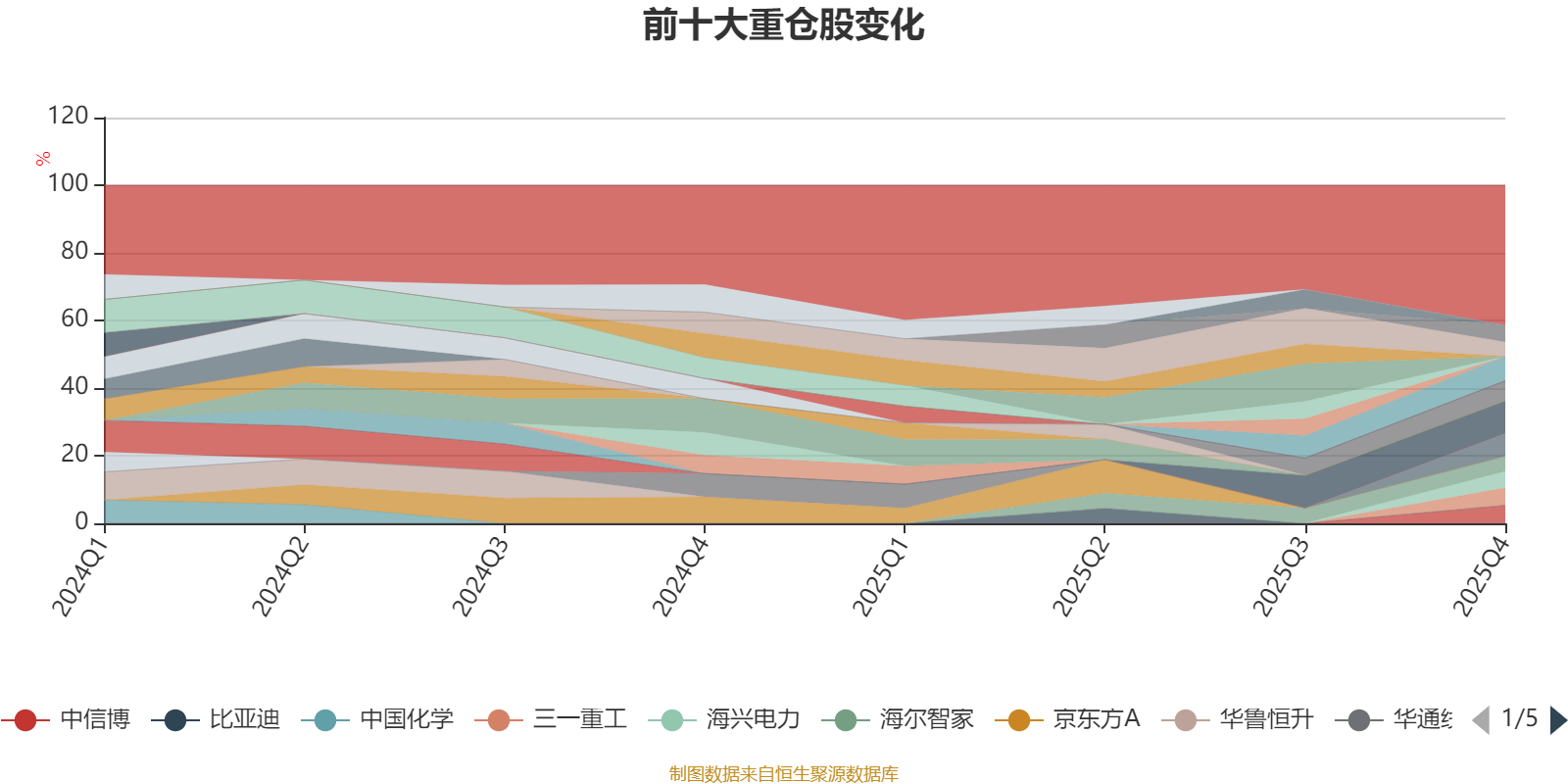 该基金持股集中度较高。截至2025年四季度末,基金十大重仓股分别是亨通光电、赛轮轮胎、宝丰能源、河钢股份、中信博、三一重工、中国平安、海兴电力、海尔智家、江山股份。
