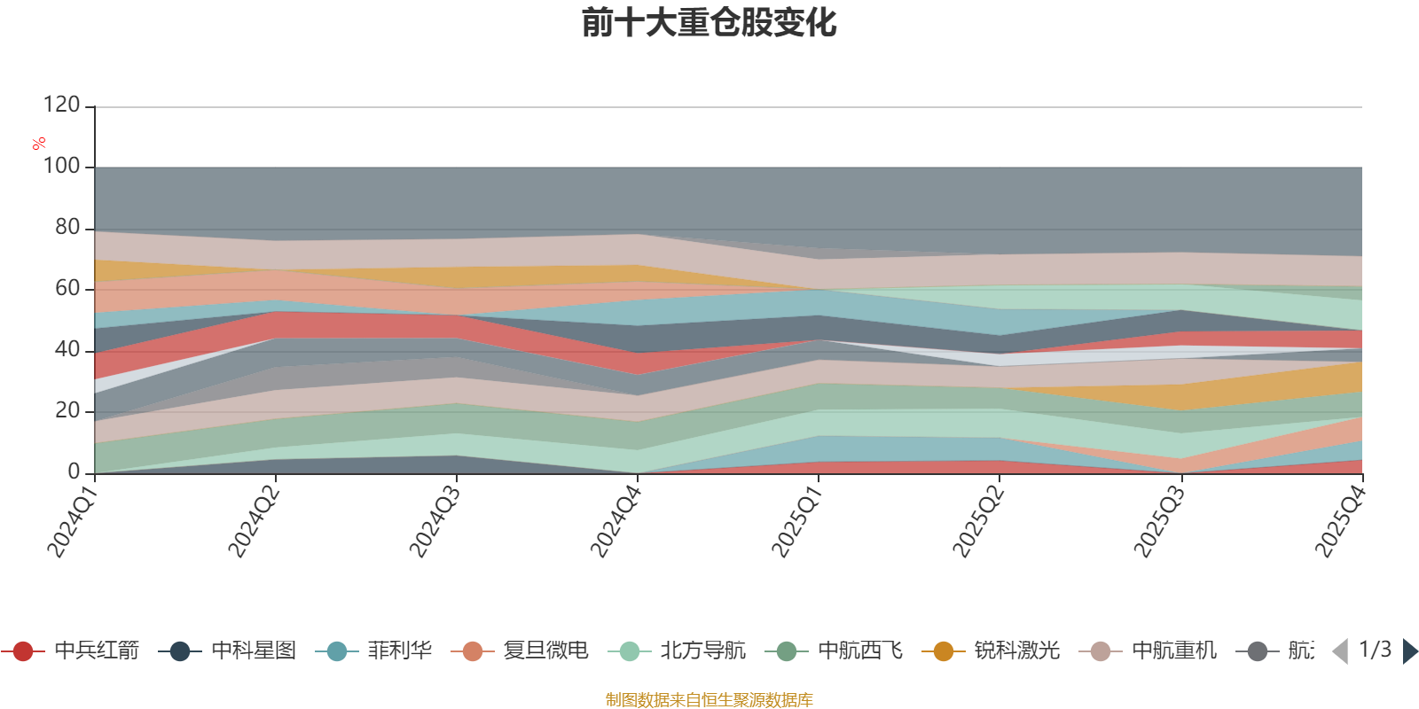 该基金持股集中度较高,近2年前十大重仓股集中度长期超过60%。截至2025年四季度末,基金十大重仓股分别是中航沈飞、国睿科技、锐科激光、中航西飞、复旦微电、菲利华、中船防务、理工导航、航发控制、中兵红箭。