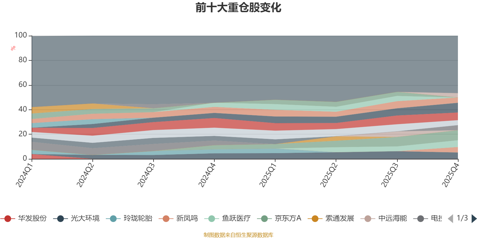 截至2025年四季度末,基金十大重仓股分别是京东方A、太阳纸业、中煤能源、鱼跃医疗、光大环境、新凤鸣、赛轮轮胎、裕同科技、电投能源、平安银行。