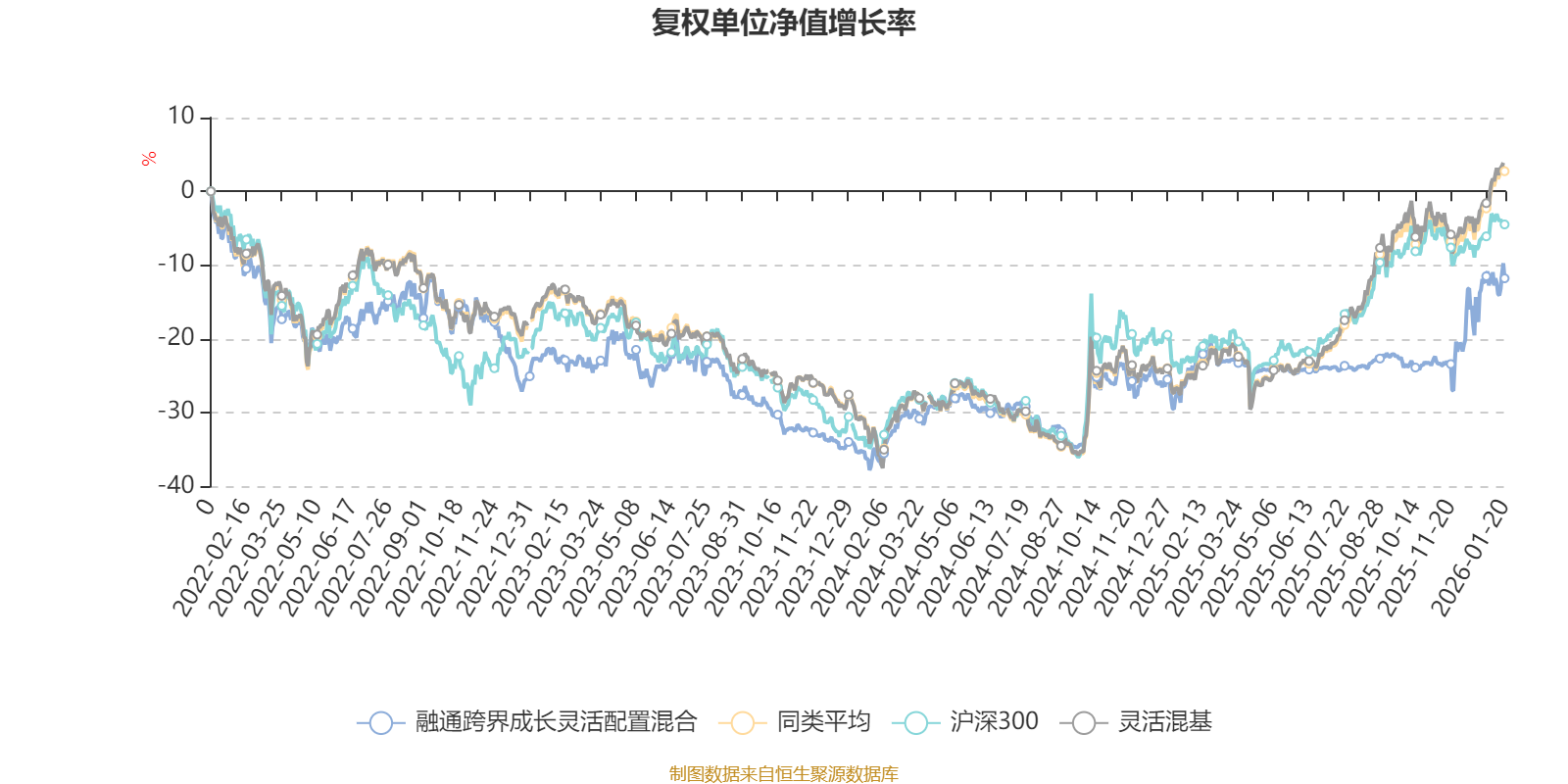 截至1月20日,融通跨界成长灵活配置混合近三个月复权单位净值增长率为15.64%,位于同类可比基金250/1286;近半年复权单位净值增长率为16.18%,位于同类可比基金802/1286;近一年复权单位净值增长率为17.59%,位于同类可比基金955/1286;近三年复权单位净值增长率为12.17%,位于同类可比基金711/1286。