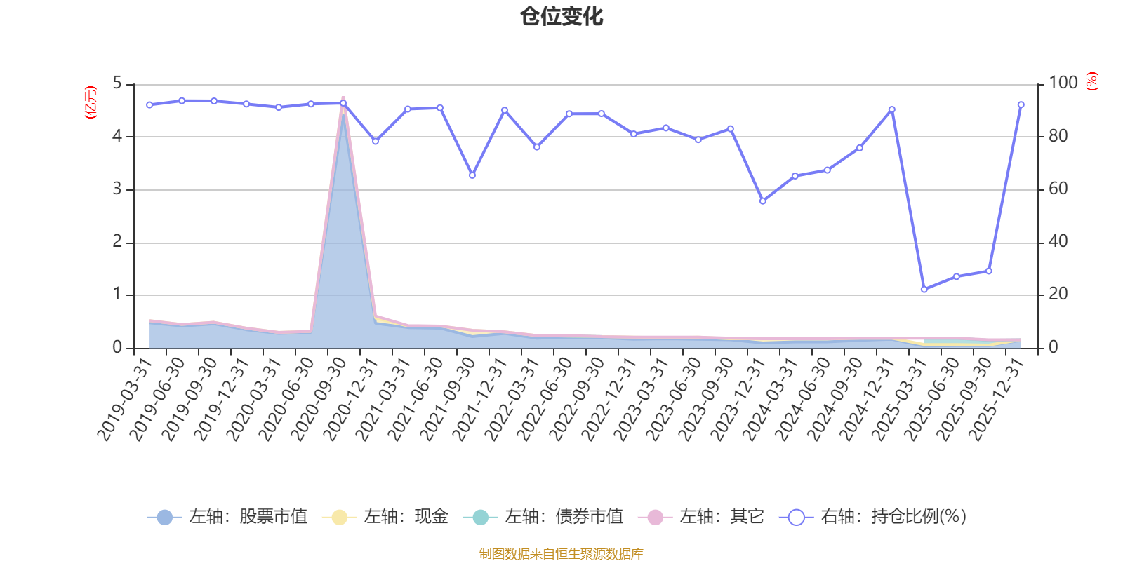 据定期报告数据统计,近三年平均股票仓位为64.26%,同类平均为72.46%。2019年上半年末基金达到93.72%的最高仓位,2025年一季度末最低,为22.29%。