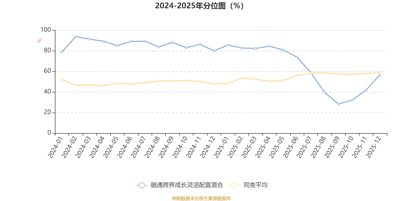 通过所选区间该基金净值增长率分位图,可以观察该基金与同类基金业绩比较情况。图为坐标原点到区间内某时点的净值增长率在同类基金中的分位数。