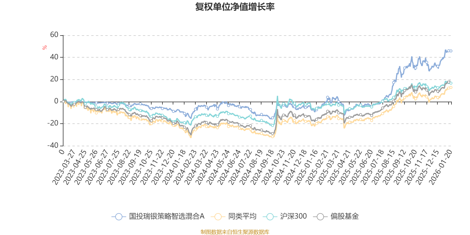 截至1月20日,国投瑞银策略智选混合A近三个月复权单位净值增长率为11.80%,位于同类可比基金197/621;近半年复权单位净值增长率为44.90%,位于同类可比基金67/621;近一年复权单位净值增长率为54.33%,位于同类可比基金142/613。