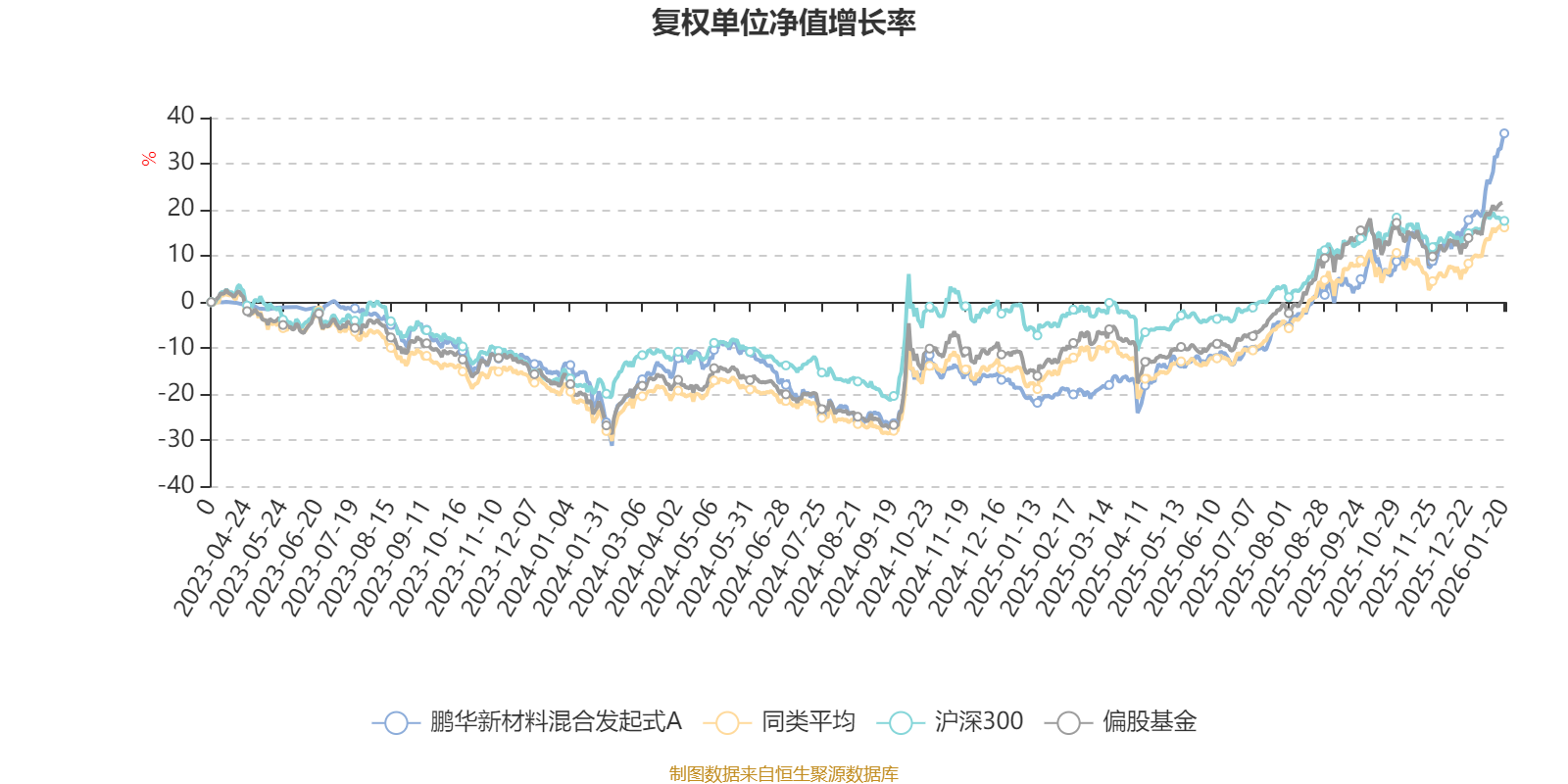 截至1月20日,鹏华新材料混合发起式A近三个月复权单位净值增长率为28.79%,位于同类可比基金22/689;近半年复权单位净值增长率为48.76%,位于同类可比基金66/689;近一年复权单位净值增长率为71.76%,位于同类可比基金46/673。