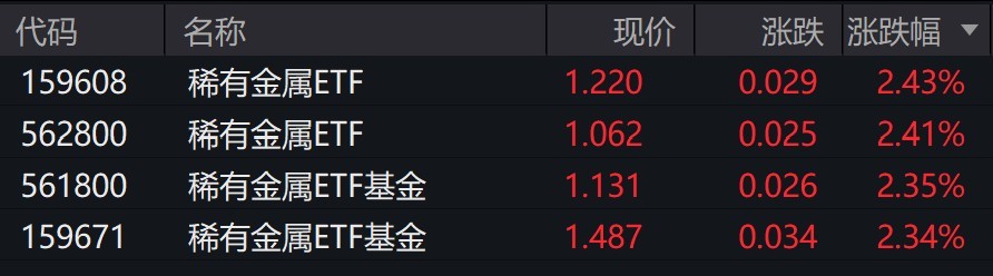 稀有金属概念股走强,稀有金属ETF涨超2%