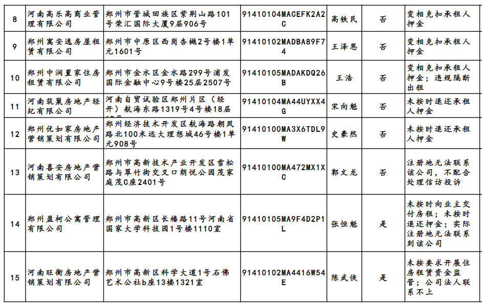 【大河财立方消息】1月20日,郑州市住房保障和房地产管理局发布租房消费警示称,近期,该局结合2025年下半年全市房屋租赁信访投诉情况,排查出16家住房租赁企业存在严重违规行为,涉及变相克扣租房押金、房屋隔断出租、企业不备案、租赁合同不备案、未按要求开展住房租赁资金监管、推诿投诉调解等问题,严重侵害租客权益。