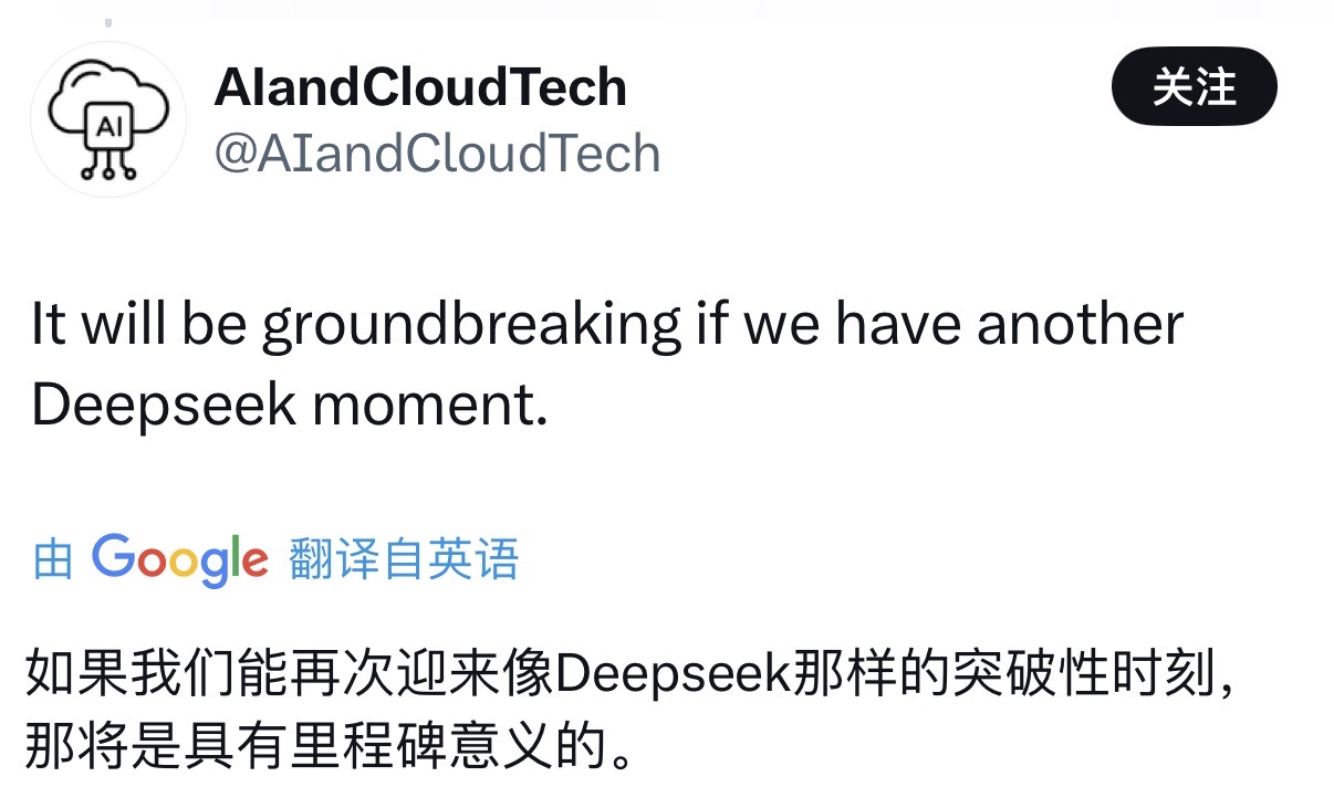 “如果我们能再迎来像DeepSeek那样的突破性时刻,那将是具有里程碑意义的。”有海外博主表示。也有网友期待DeepSeek的发布速度能够更快,这对开源社区来说是个好事。