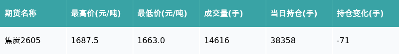 焦炭主力合约收跌0.59%