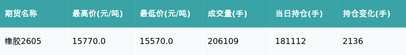 南财智讯1月21日电,盘后期货数据显示,上海期货交易所的橡胶主力合约收涨0.86%,收盘报15745.0元/吨,日内资金流入1.01亿元。其他相关指标见下表: