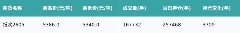 南财智讯1月21日电,盘后期货数据显示,上海期货交易所的纸浆主力合约收跌0.07%,收盘报5360.0元/吨,日内资金流入2214.81万元。其他相关指标见下表: