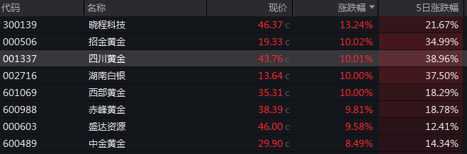 根据wind统计,年初至1月21日,四川黄金本月已经累计上涨57.07%,涨幅位居上述申万黄金板块10只成分股首位。