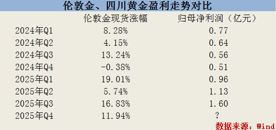 2025年前三个季度,伦敦金现货分别涨至19.01%、5.74%、16.83%,价格运行中枢逐季度拔高;同期,四川黄金归母净利润为0.96亿元、1.13亿元、1.6亿元,也呈现出了逐季度增长的趋势。