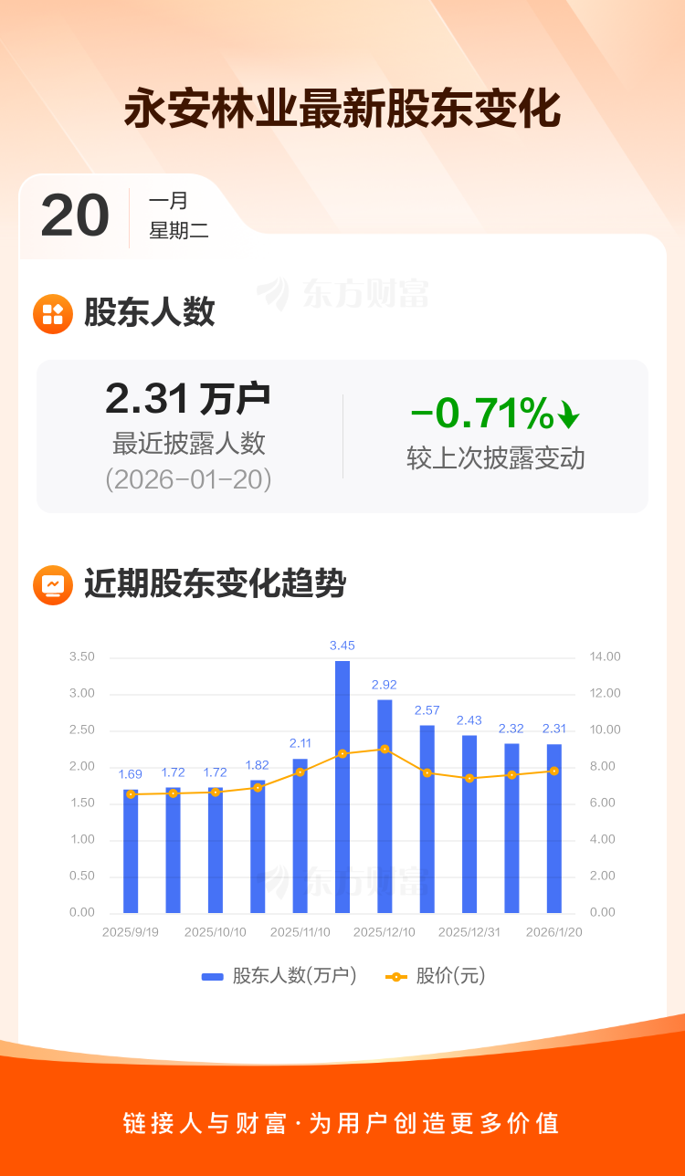 永安林业:截至1月20日最新股东户数2.31万户,较上期减少0.71%