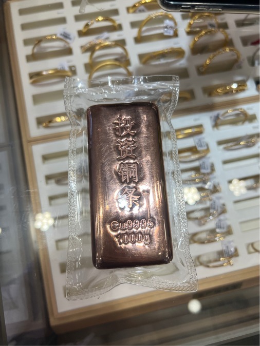 近期,社交媒体上有博主分享深圳水贝出售投资铜条(1000g),售价为180元—250元。