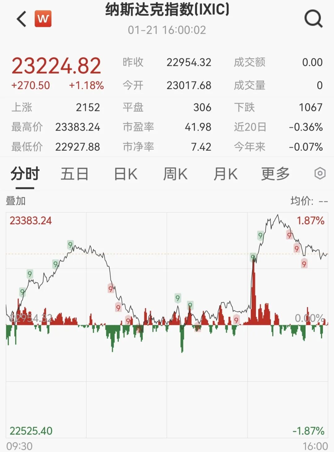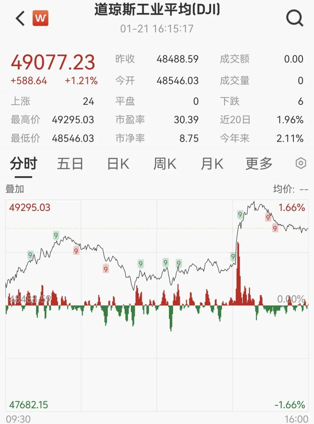 美国三大股指全线收涨,道指涨1.21%,报49077.23点;标普500指数涨1.16%,报6875.62点;纳指涨1.18%,报23224.82点。