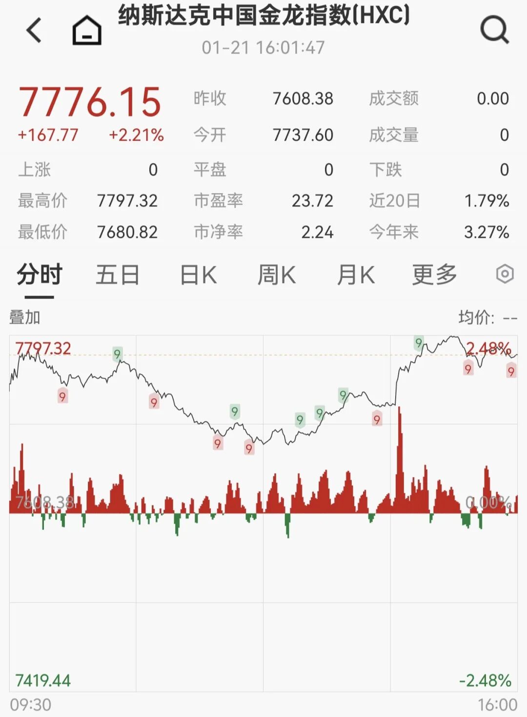 中国资产大幅上涨,纳斯达克中国金龙指数涨2.21%,万得中概科技龙头指数涨1.81%。
