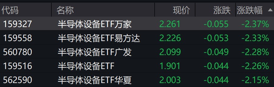 半导体设备概念股走弱,芯源微跌超4%,长川科技、中科飞测、南大光电跌超3%。