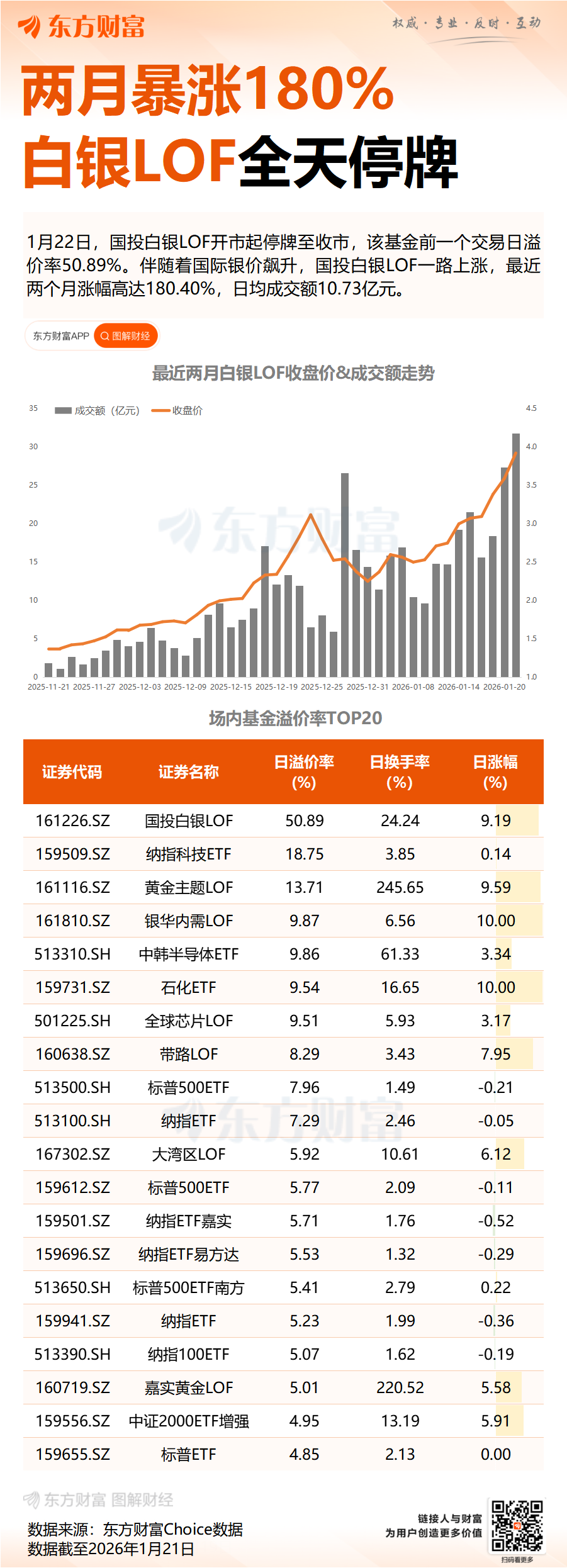 国投白银LOF全天停牌!一图速览场内基金溢价率TOP20
