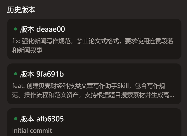 紧接着向其输入记者本人之前写过的文章,让其学习文章风格,并针对该“技能”首次生成的文章结果进行了针对性点评,让其“避坑”。很快,“贝壳财经科技类文章写作技能”针对提醒进行了迭代,生成了“2.0”版本。