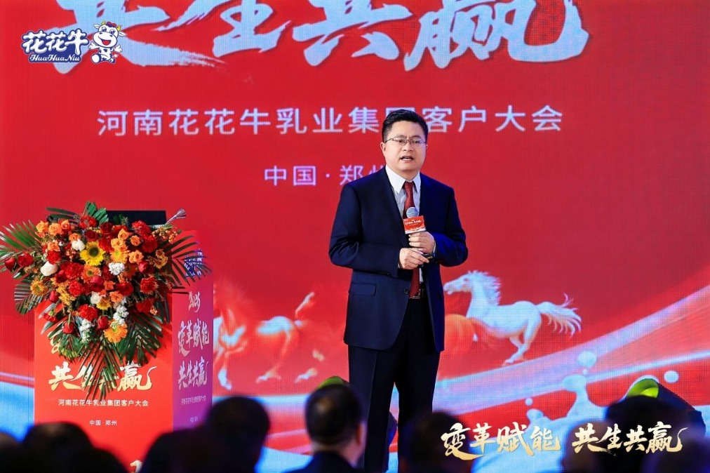 郑州大雪前,寒冷提前到达,但这里的气氛热烈且充满希望。1月18日,河南花花牛乳业集团2026年度客户大会现场,气氛因一个主题而涌动——“变革赋能共生共赢”。240多家核心经销商、配送商伙伴与花花牛乳业集团共聚一堂,共谋发展大计。