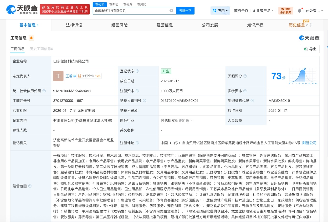 小象超市在山东成立新科技公司