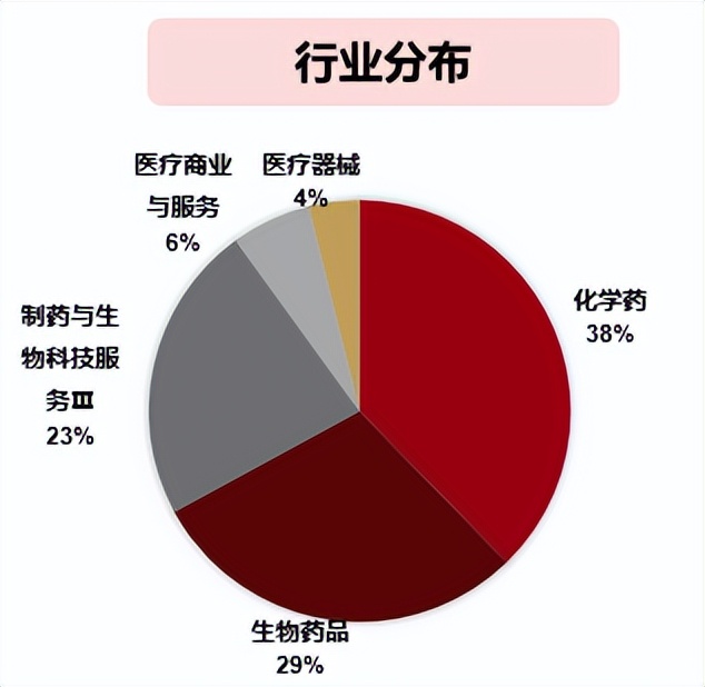 下方的饼图展示了样本的行业分布,涵盖化学药、生物药,以及尤为重要的“制药与生物科技服务”领域。这一领域对应的正是大家较为熟悉的“CXO”(即医药研发外包),在行业分布中以“制药与生物科技服务”呈现。