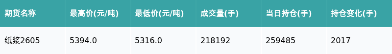 纸浆主力合约收涨0.34%