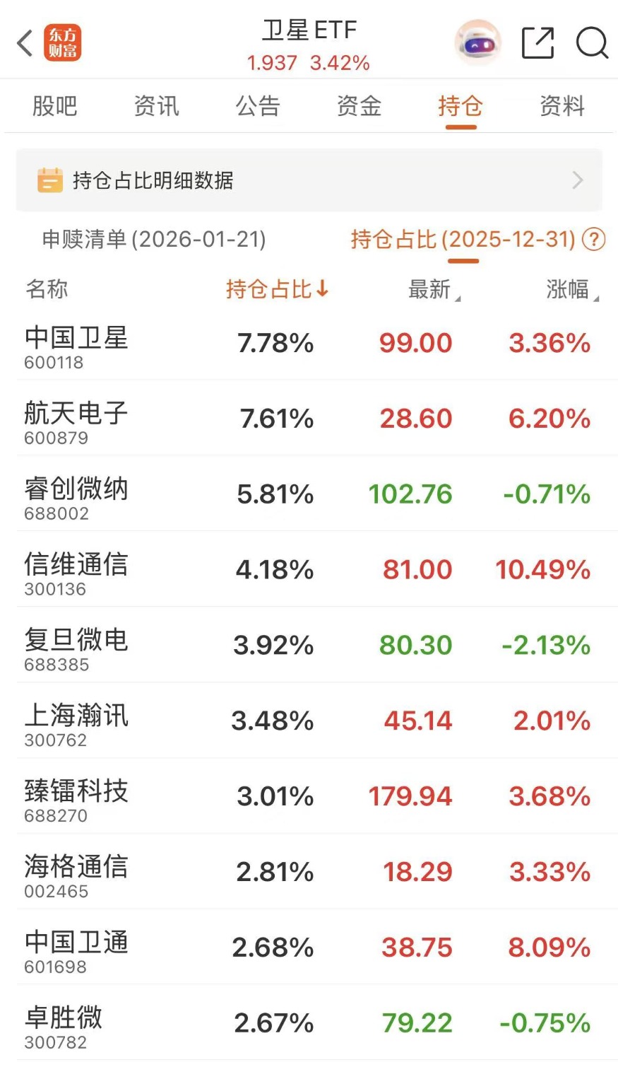 卫星ETF(159206),跟踪国证商用卫星通信产业指数,覆盖卫星制造、通信、导航等全产业链。聚焦商业航天+卫星通信,权重占比超56%,重仓中国卫星、航天电子,直接受益于太空数据中心建设及太空算力需求增长。近20个交易日日均成交额23.94亿元,今年以来日均成交额32.01亿元,流动性充裕。