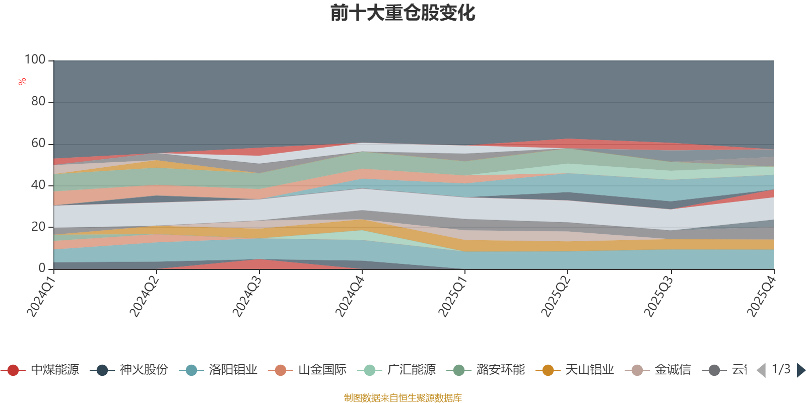 该基金持股集中度较高。截至2025年四季度末,基金十大重仓股分别是紫金矿业、洛阳钼业、兴业银锡、云铝股份、天山铝业、中国铝业、山东黄金、中孚实业、江西铜业、华友钴业。
