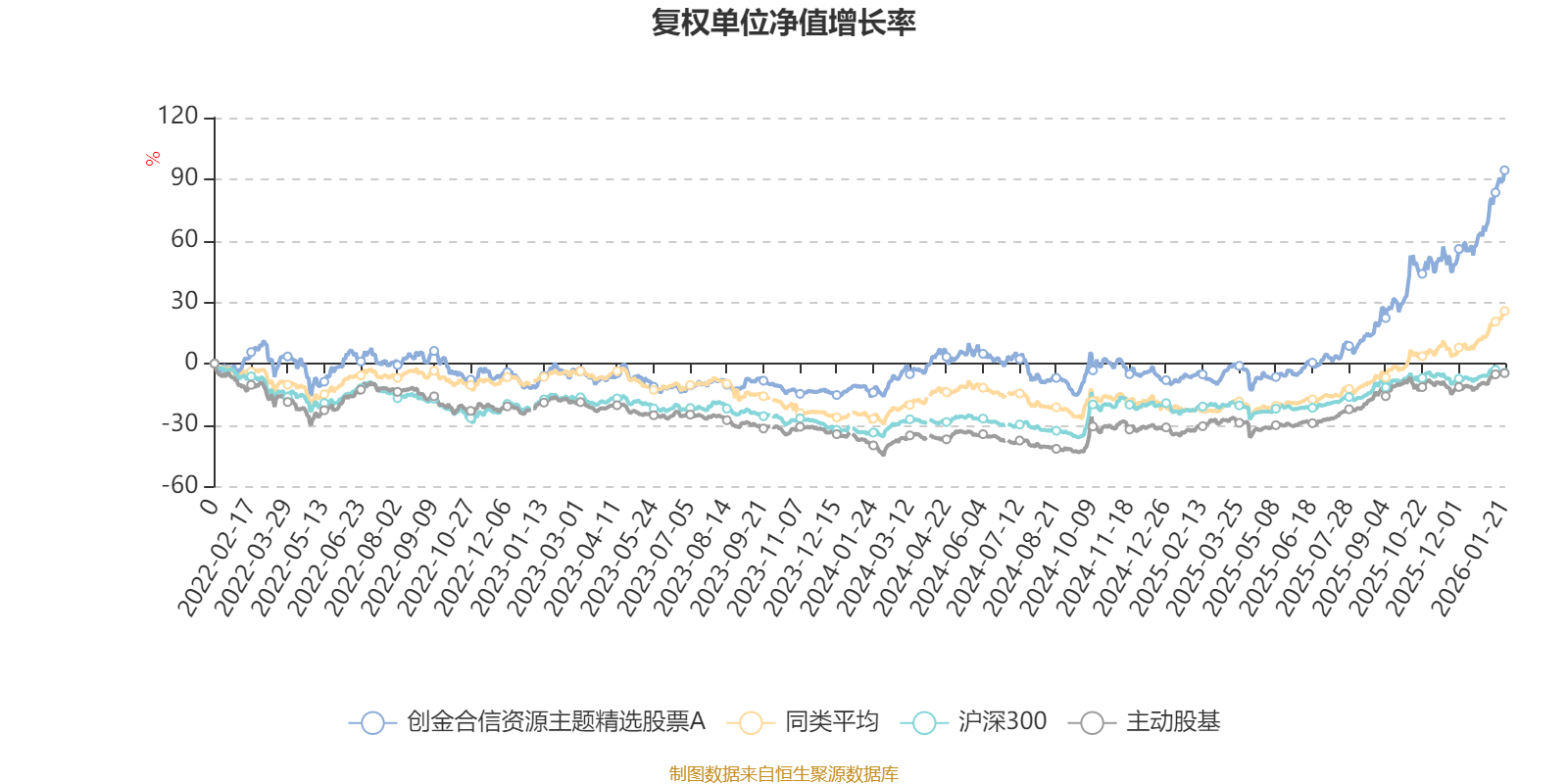 截至1月21日,创金合信资源主题精选股票A近三个月复权单位净值增长率为34.12%,位于同类可比基金1/13;近半年复权单位净值增长率为83.03%,位于同类可比基金2/13;近一年复权单位净值增长率为107.37%,位于同类可比基金2/13;近三年复权单位净值增长率为98.13%,位于同类可比基金2/9。