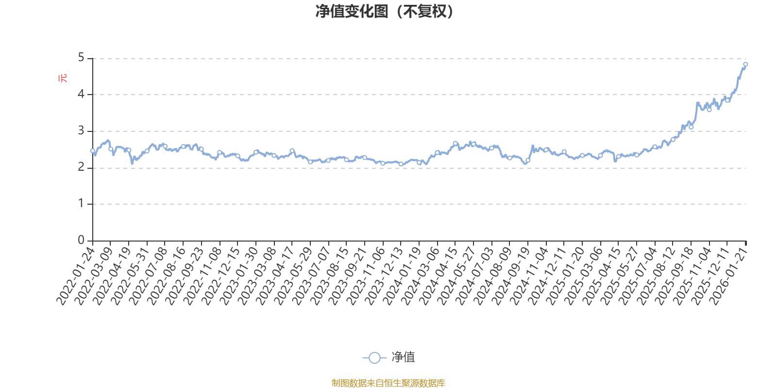 该基金属于标准股票型基金,长期投资于周期股票。截至1月21日,单位净值为4.834元。基金经理是李游和黄超。