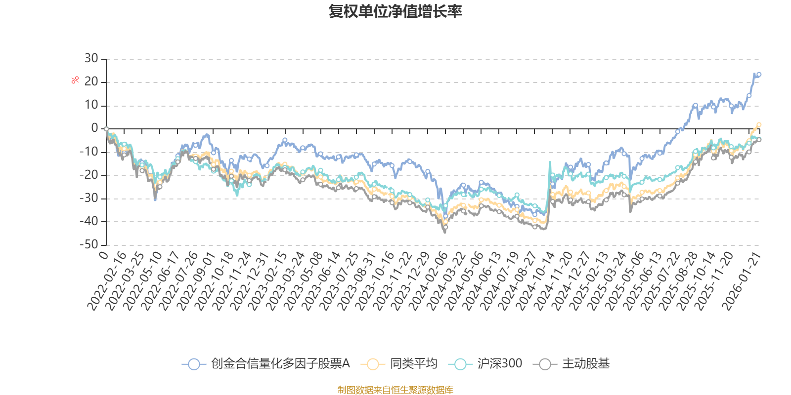 截至1月21日,创金合信量化多因子股票A近三个月复权单位净值增长率为12.56%,位于同类可比基金57/167;近半年复权单位净值增长率为25.37%,位于同类可比基金97/167;近一年复权单位净值增长率为49.71%,位于同类可比基金56/165;近三年复权单位净值增长率为36.92%,位于同类可比基金41/156。