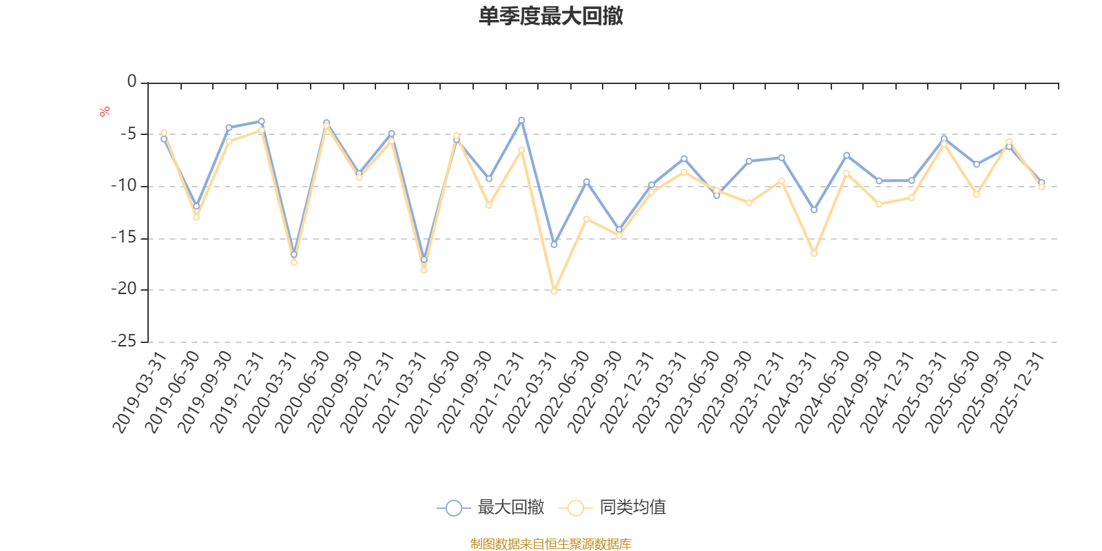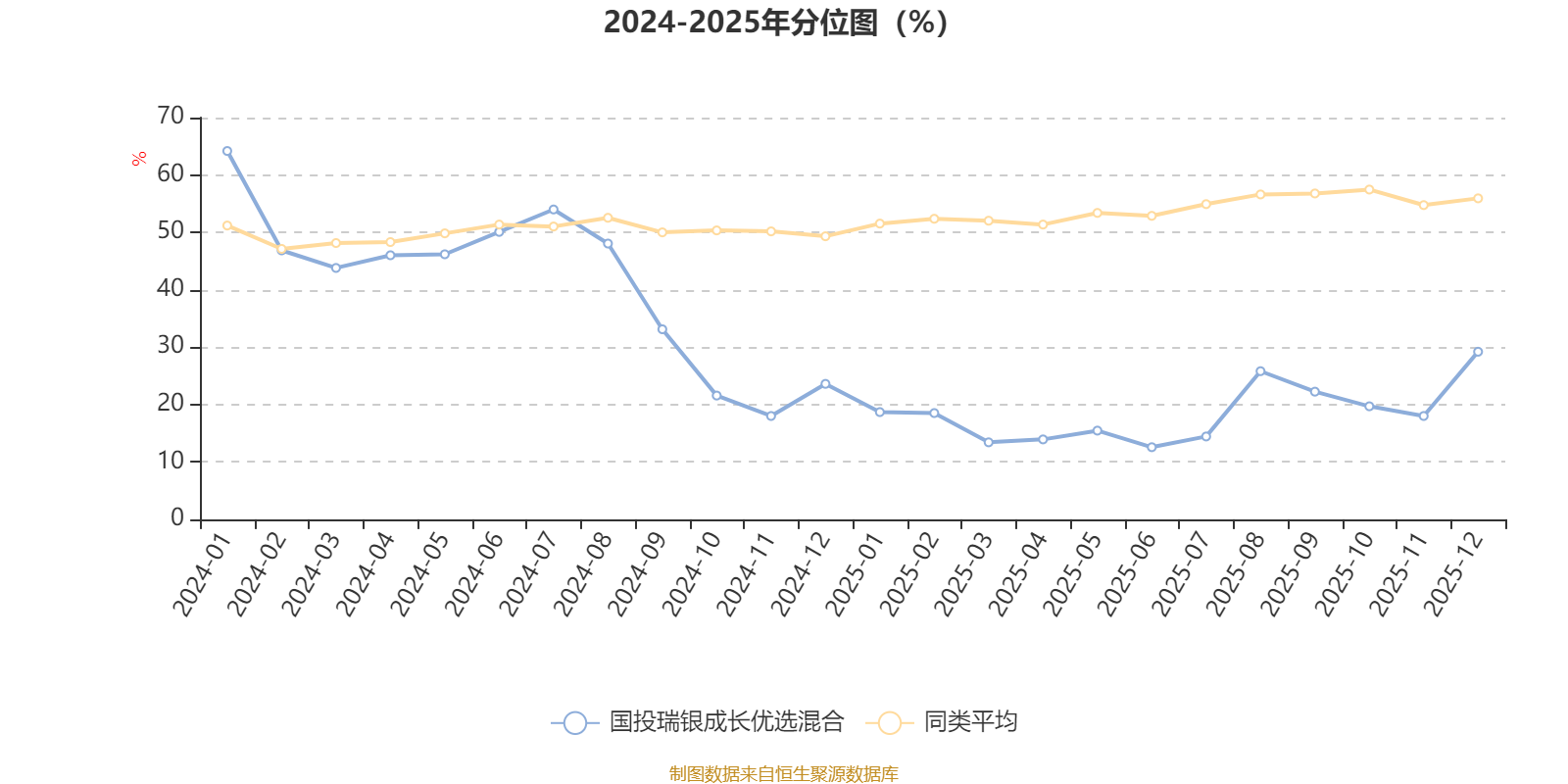 通过所选区间该基金净值增长率分位图,可以观察该基金与同类基金业绩比较情况。图为坐标原点到区间内某时点的净值增长率在同类基金中的分位数。