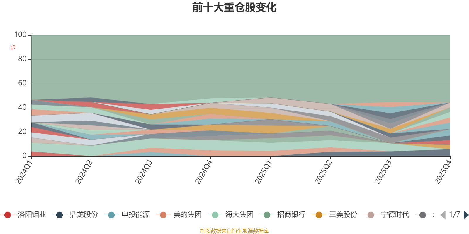 截至2025年四季度末,基金十大重仓股分别是鼎龙股份、寒武纪、新凤鸣、中国平安、巨化股份、菲利华、紫金矿业、中矿资源、桐昆股份、三美股份。