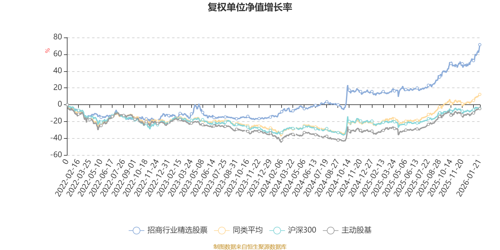 截至1月21日,招商行业精选股票近三个月复权单位净值增长率为16.45%,位于同类可比基金4/58;近半年复权单位净值增长率为41.03%,位于同类可比基金14/58;近一年复权单位净值增长率为50.53%,位于同类可比基金23/57;近三年复权单位净值增长率为95.95%,位于同类可比基金3/57。