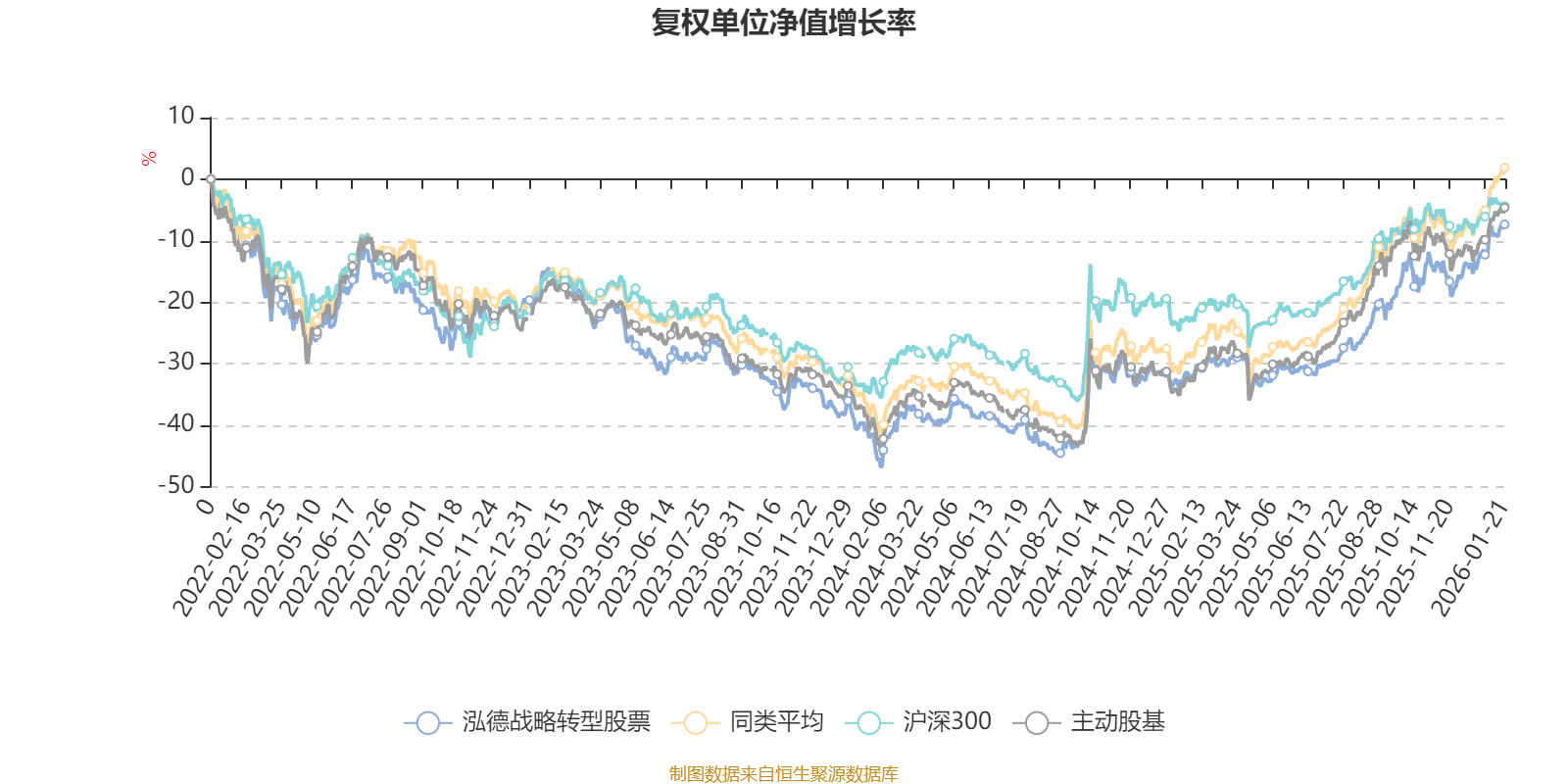 截至1月21日,泓德战略转型股票近三个月复权单位净值增长率为10.39%,位于同类可比基金80/167;近半年复权单位净值增长率为28.90%,位于同类可比基金80/167;近一年复权单位净值增长率为35.08%,位于同类可比基金104/165;近三年复权单位净值增长率为8.52%,位于同类可比基金110/156。