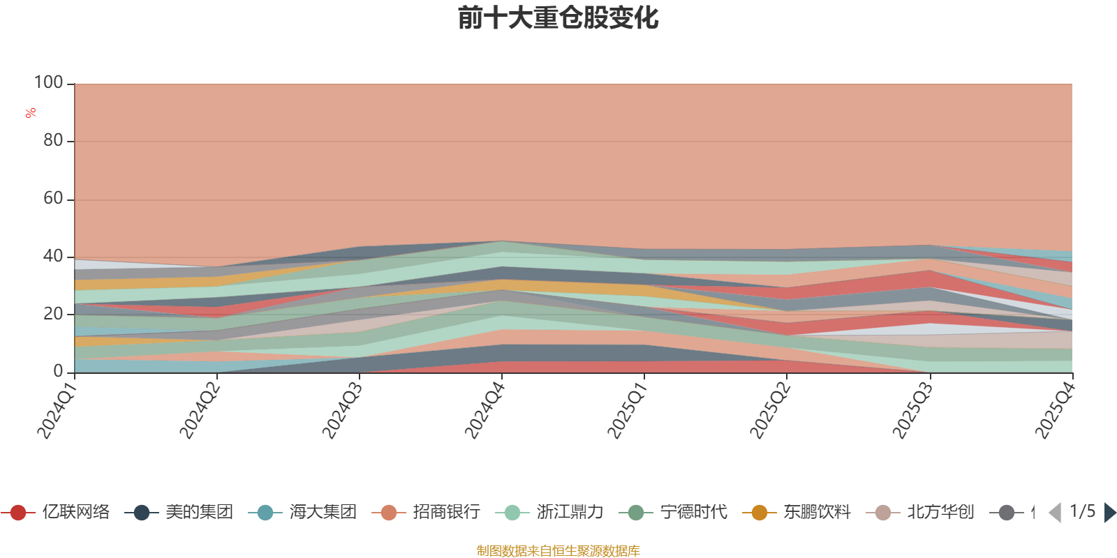 截至2025年四季度末,基金十大重仓股分别是北方华创、中国平安、恒立液压、宁德时代、浙江鼎力、云铝股份、阳光电源、新宙邦、工业富联、鹏鼎控股。